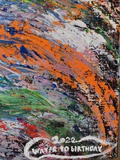 取扱注意:アクリル絵の具なので、経年劣化による剥がれや紫外線による色褪せ等は現れて来ます。